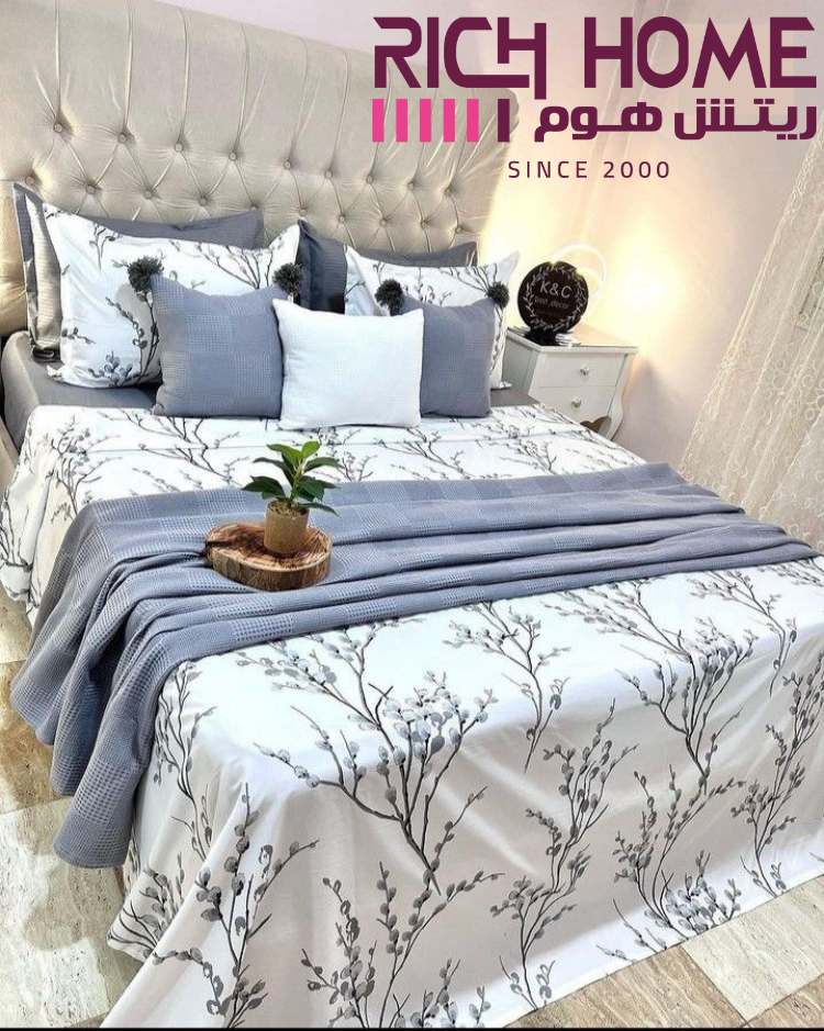 نقدم في محل مفروشات ريتش هوم تشكيلة واسعة وعصرية: في معارضنا توجد مجموعة كبيرة ومتنوعة من ملايات السرير التي تتميز بتصاميمها العصرية وجودتها العالية التي بالتأكيد ستنال إعجابك.